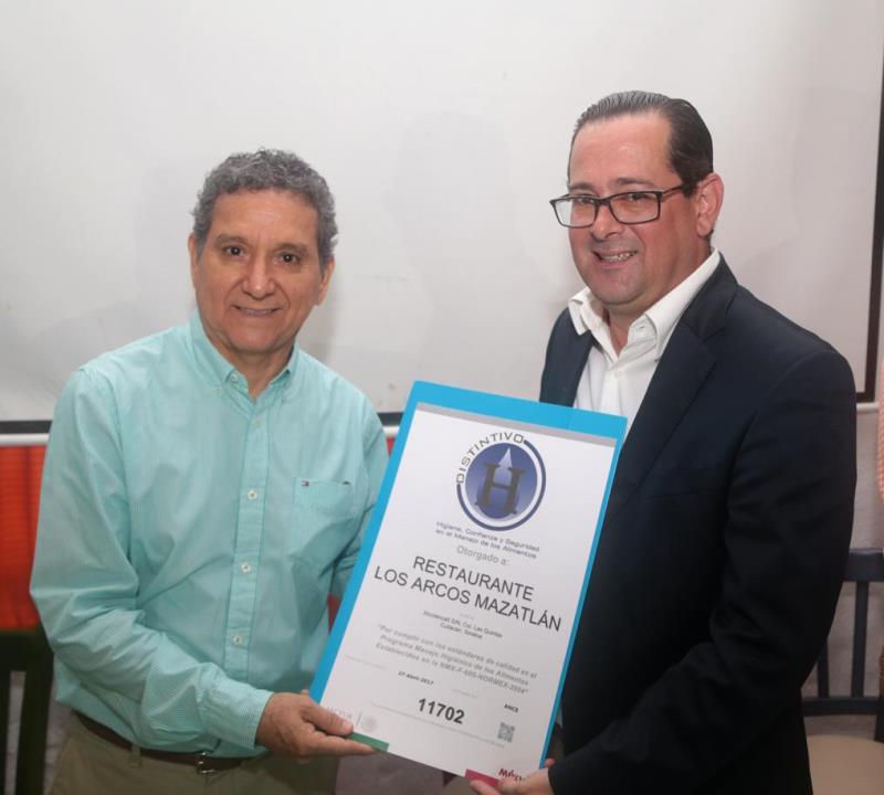 Por su parte, Fausto Angulo Valdez, propietario de Los Arcos Mazatlán, agradeció a la Secretaría de Turismo todo el apoyo para llevar a cabo para realizar y establecer el Distintivo “H” en la empresa, lo que la hace más confiable para los clientes y el sector turístico y gastronómico.