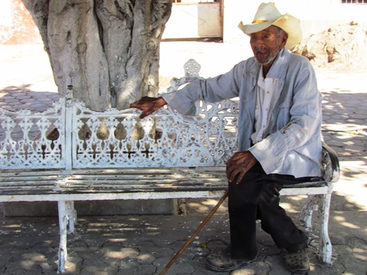 Pedro Ornelas Valdez, alias “Pedro Mogón” es una de las reliquias humanas más valiosas de Chametla, pues a sus 108 años, y aunque un poco sordo, aún habla con claridad y recuerda muchas de sus vivencias, mismo que con pierna cruzada y boca desdentada, se pone siempre en una banca de la esquina poniente de la plazuela y empieza a hablar con la primer persona que se siente a su lado, en esta ocasión Mazatlán interactivo lo entrevistó y le tomó un video, pero antes que las cámaras empezaran a filmar dijo rememorando tiempos pasados: “Antes en Chametla todo era muy bonito, había mucha gente que pescaba en las marismas, yo era muy buen pescador y sacaba unos robalos muy grandes, había mucho camarón, mucha lisa y muchos pescados se nos echaban a perder porque no había como conservarlos, mucho de ese pescado lo salábamos y lo guardamos para semana Santa, había mucho Chriro y lo comíamos tostado en las brasas con atole.