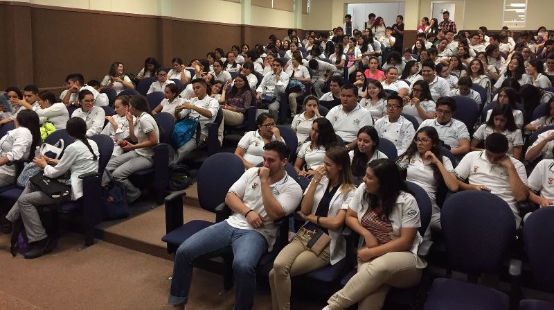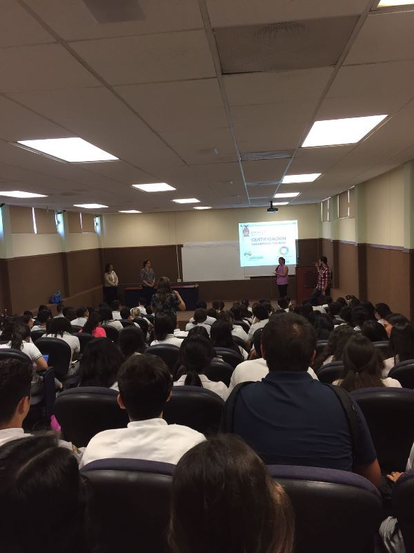 Ante la presencia de más de 120 alumnos, Arias Gámez agregó que el Distintivo se obtiene con la asesoría de un Consultor Certificado que imparte capacitación al personal que labora en los establecimientos fijos de alimentos y bebidas que así lo soliciten de acuerdo la lista de verificación de la NMX-F-605-NORMEX-2015.