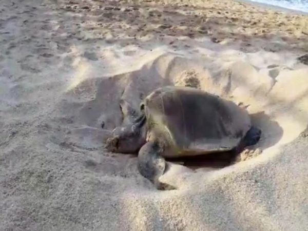 Sale tortuga golfina a depositar sus huevos en playa mazatleca