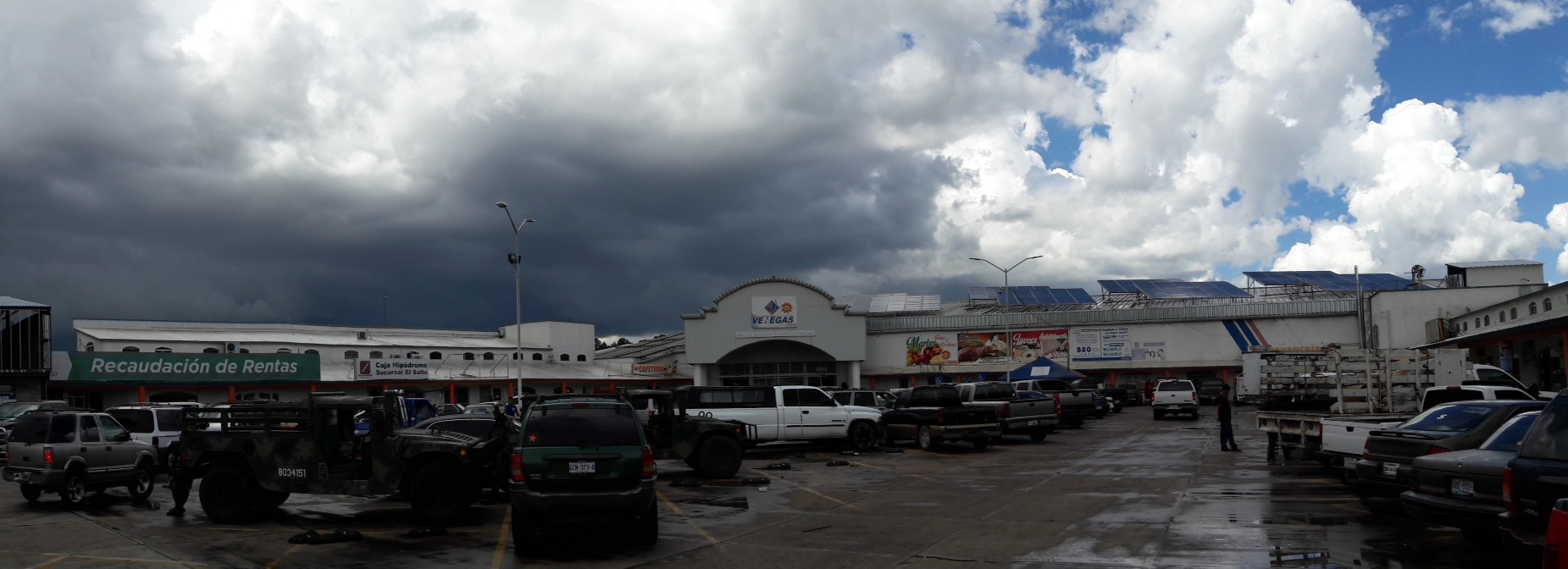 Una vez cumplido el sueño de conocer el arbol de las mazanas, recorrimos la ciudad. Conforme iba pasando el tiempo, el clima bajaba, entramos a un centro comercial el cual no tenía aire acondicionado, incluso privaba en su interior un ambiente cálido. Afuera, la gente vestía con sus chamarras y yo con una playera sencilla, claro que ya empezaba a temblar del frío, pues una repentina lluvia se dejó venir en lo que comíamos un pollo asado en la plaza comercial.