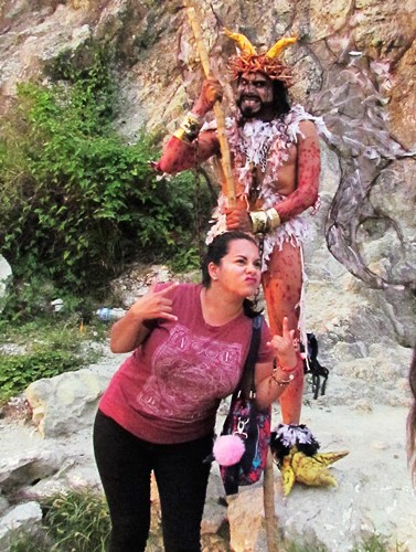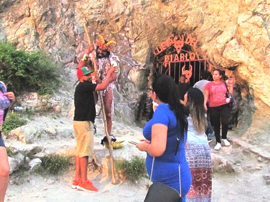 El Diablo en persona orgulloso se paseaba como si nada frente a la famosa Cueva del Diablo y presumido se dejaba fotografiar, incluso hasta coqueteaba con algunas guapas turistas. Pero también les causaba terror a las niñas y niños.