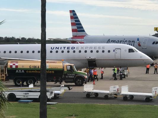 Dicho vuelo fue recibido, como ya es la costumbre con el tradicional bautizo de chorros de agua provenientes de los carros de bomberos de este recinto, evento que por cierto estuvieron congregados muchos medios de comunicación, personal del aeropuerto, representantes de la aerolínea United, quienes en conjunto cortaron el simbológico listón que apertura la llegada.