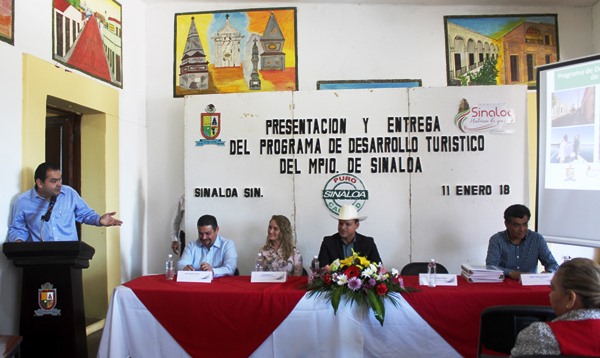 El oficial mayor, Javier Báez, en representación de la alcaldesa María León, acompañada de CODESIN y autoridades municipales se reunieron en la Casa de la Cultura, con el objetivo de llevar a cabo la presentación del programa de Desarrollo Turístico que vendrá a aumentar el número de visitantes al municipio de Sinaloa.