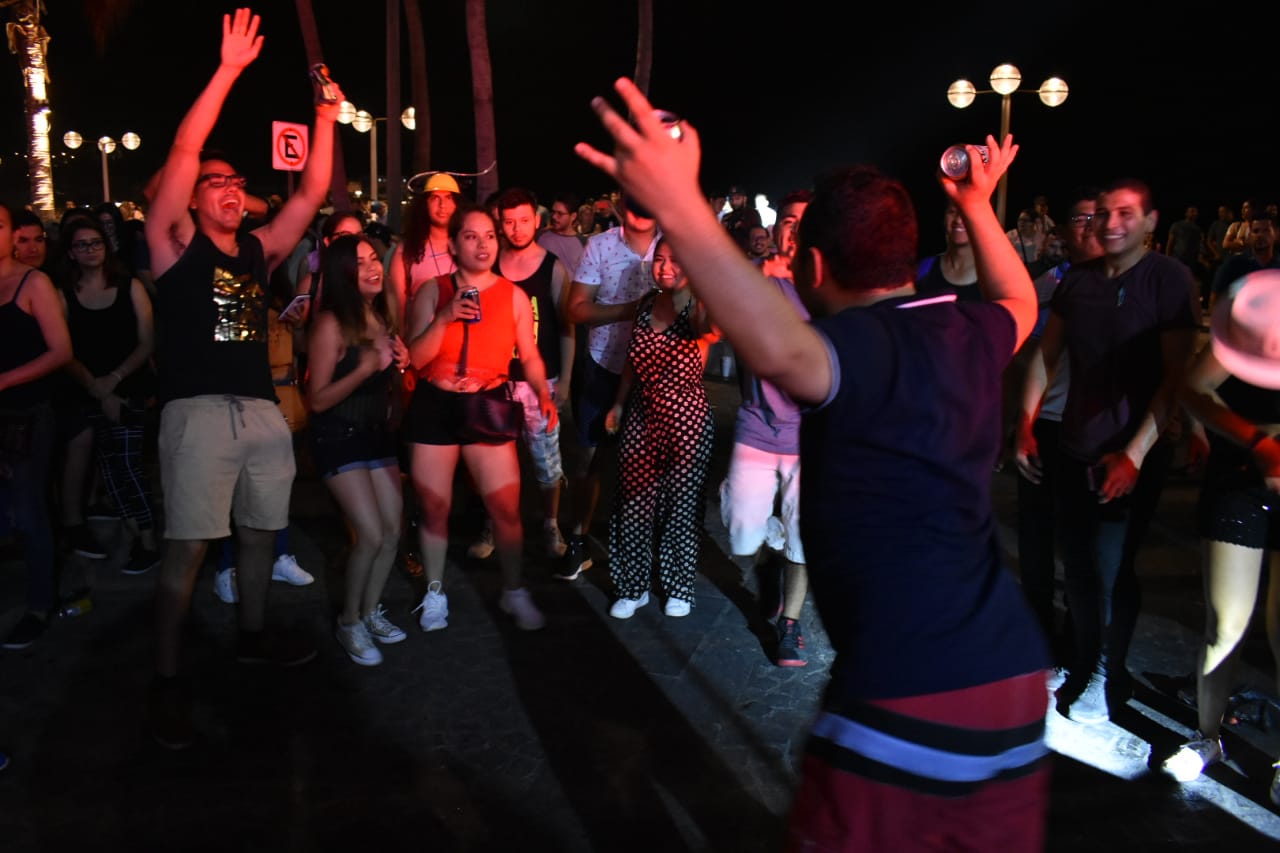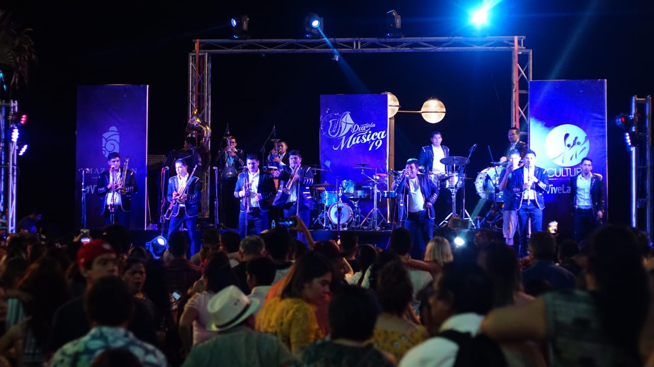Mientras que en el templete posicionado en Olas Altas el ambiente florecia, el público bailó y disfrutó en grande el Día de la Música con las agrupaciones Mambito Band, Marimbatlán, banda la Miletera y One Play.