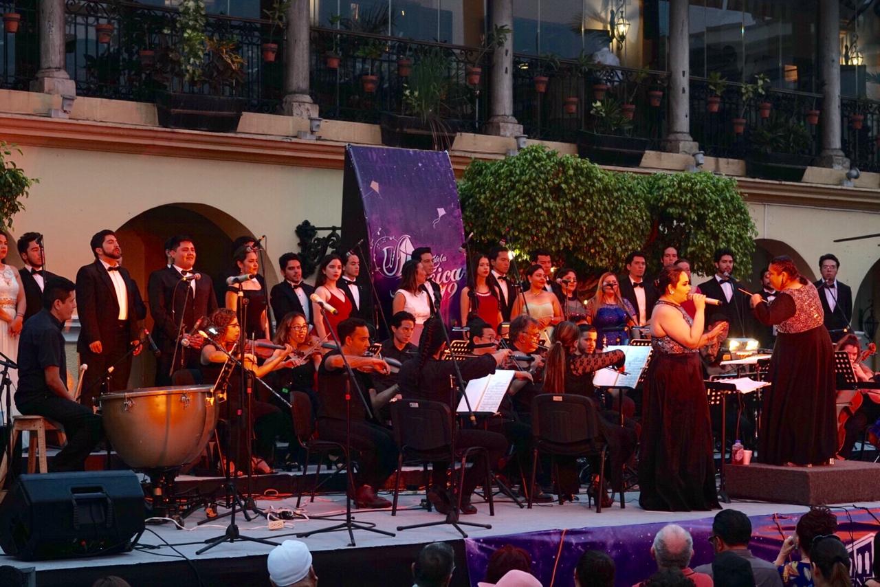 La Camerata Mazatlán acompañados del Coro Guillermo Sarabia abrieron el telón del templete ubicado en la Plazuela Machado quienes interpretaron grandes piezas musicales que comenzaban a darle sabor a la noche, posteriormente subió al escenario Rebeca de Rueda con un repertorio de grandes boleros románticos, le continuó la agrupación The Truth integrada por norteamericanos residentes de Mazatlán con música de Rock, blues y folk, Ugo Rodríguez uno de los cantantes más importantes del país fundador de la banda de rock “Azul Violeta”, cerró las presentaciones en la emblemática Plazuela convirtiendo el espectáculo del agrado de cientos de asistentes.