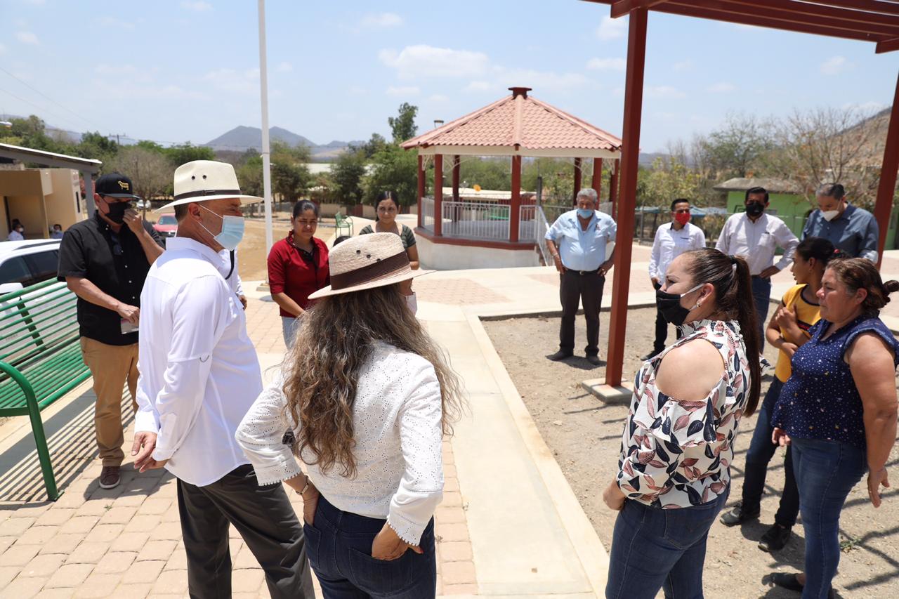 Durante esta jornada de trabajo el gobernador Quirino Ordaz junto a las autoridades estatales y municipales, realizaron un recorrido por la obra de la plazuela de esta sindicatura.