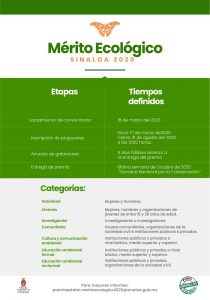 Culiacán, Sinaloa a 17 de Mayo del 2020.- Debido a la emergencia sanitaria por el Coronavirus, Gobierno del Estado determinó que la entrega del Premio al Mérito Ecológico Sinaloa 2020 será en octubre en el marco de la “Semana Nacional de la Conservación”.