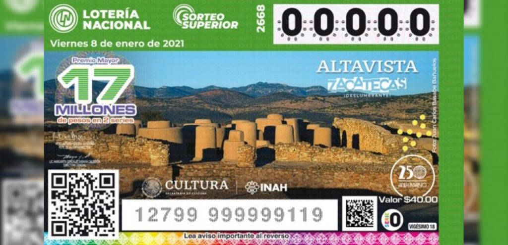 Con la celebración del Sorteo Superior No. 2668, cuyo protagonista fue el antiguo centro ceremonial de Altavista, se inauguró la emisión de billetes de lotería dedicados a 32 zonas arqueológicas del país, una por cada entidad federativa, los cuales son una invitación a la suerte y a incentivar el turismo doméstico en el marco de 2021, declarado “Año de la Independencia y de la Grandeza de México”.