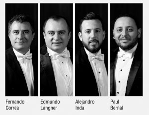 Fernando Correa, Edmundo Langner, Alejandro Inda y Paul Bernal interpretarán la pieza “Sweet swaft” (Pantano suave), de Nicolás Martynciow, ensamble para cuarteto de percusión con una instrumentación rica y muy variada, que va desde platillos, caja, bombo, crótalos, metal, triángulo, pandereta, bongós, maracas, y otras.