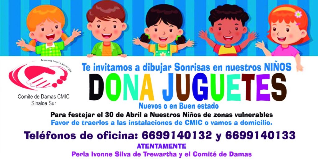 Del primero al 28 de abril estará vigente la colecta de Juguetes, Nuevos o en Buen estado que fue presentada ante los medios de comunicación de Mazatlán y de Sinaloa por la Presidente del Comité de Damas Perla Ivonne Silva de Trewartha.