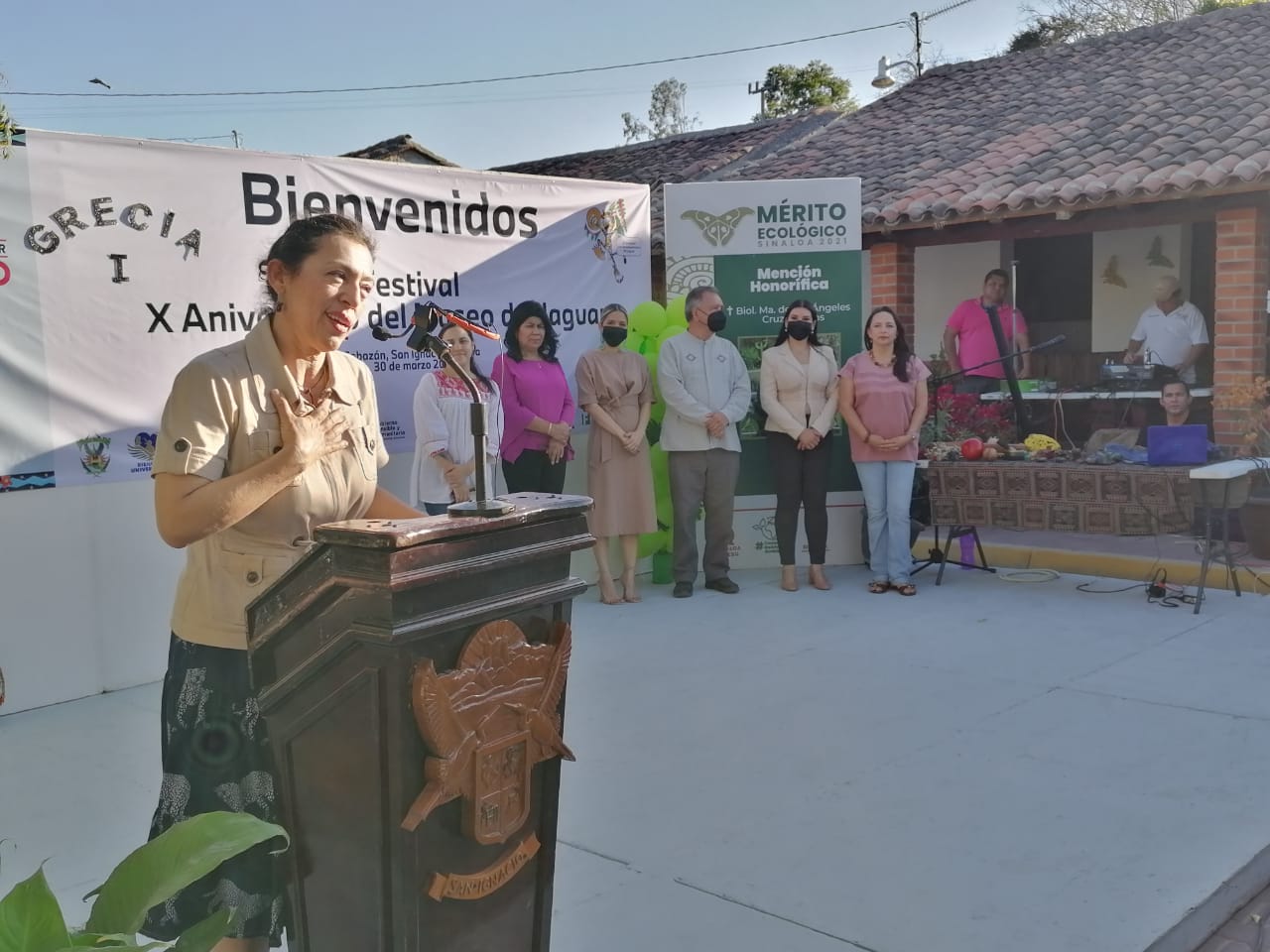 La síndico procurador, Magaly Manjarrez Bastidas, Sofía Angulo de Madueña, Directora de Bienestar Universitario de la UAS, Servando Rojo, Director de INAH en Sinaloa, Rodolfo Anguiano, Presidente de la Red de Museos Comunitarios y Ecomuseos del Noroeste de México, Estrella Palacios Domínguez, Subsecretaria de Promoción y Operación Turística de SECTUR y el director de turismo en San Ignacio, Carlos Piña fueron parte de las autoridades presentes en este evento.
