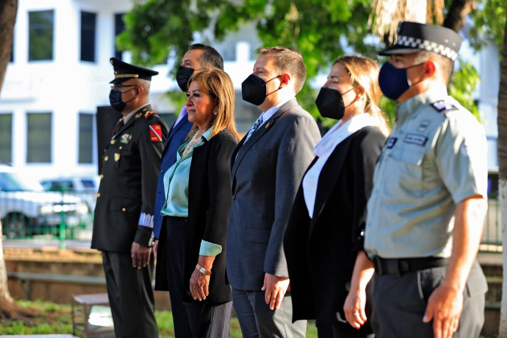 En representación del gobernador Rubén Rocha Moya, María Teresa Guerra Ochoa, secretaria del SEMUJERES, encabezó este evento conmemorativo, acompañada del diputado local, Gene René Bojórquez Ruiz, el presidente del Supremo Tribunal de Justicia Jesús Iván Chávez Rangel, la síndica procuradora, María del Rosario Valdez Páez, el comandante del 94/0 Batallón de Infantería de la 9na. Zona Militar Alfredo González Cuevas y el coronel de Artillería D.E.M. Omar Alberto Cabello Zarazúa.