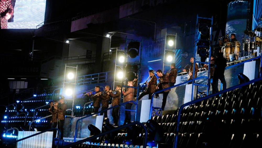 Después de las presentaciones de jugadores y del cuerpo técnico del equipo mazatleco, La Banda El Recodo continuó con su espectacular presentación en el KRAKEN Mazatlàn después de no haberse presentado en mucho tiempo en este puerto, motivo de sus largas y ajetreadas giras por el país y USA.