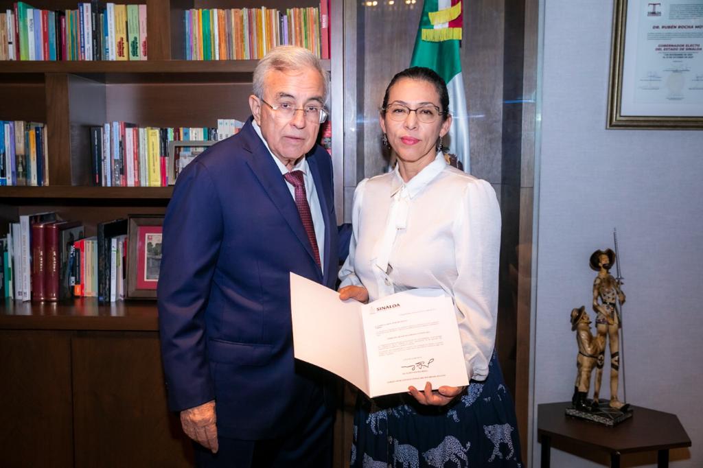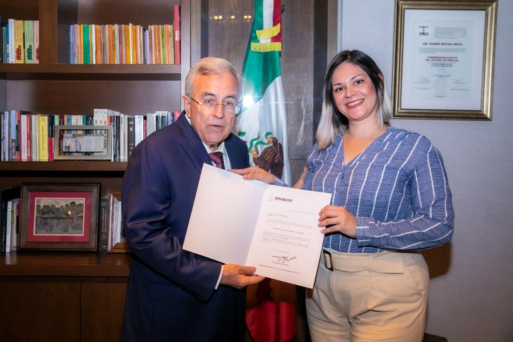 Culiacán, Sinaloa, a 01 de Noviembre de 2022.- Hoy por la mañana, el Gobernador Rubén Rocha Moya, acompañado de María Inés Pérez Corral, titular de la Secretaría de Bienestar y Desarrollo Sustentable (SEBIDES), tomó protesta a Nicté Loi Ceceña Romero, como Subsecretaria de Evaluación y Planeación de esta dependencia.