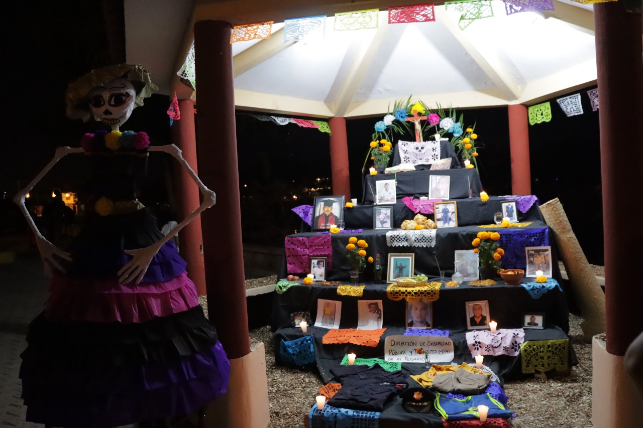 Se realizó también una demostración de altares donde participaron instituciones educativas y gubernamentales, el Ayuntamiento de Rosario le dedicó un altar al ex presidente municipal Pedro Ibarra Angulo, DIF Rosario a Teresa Osuna Crespo, la primera presidente mujer del municipio mientras Seguridad Publica y Tránsito Municipal, honraron a los elementos caídos.