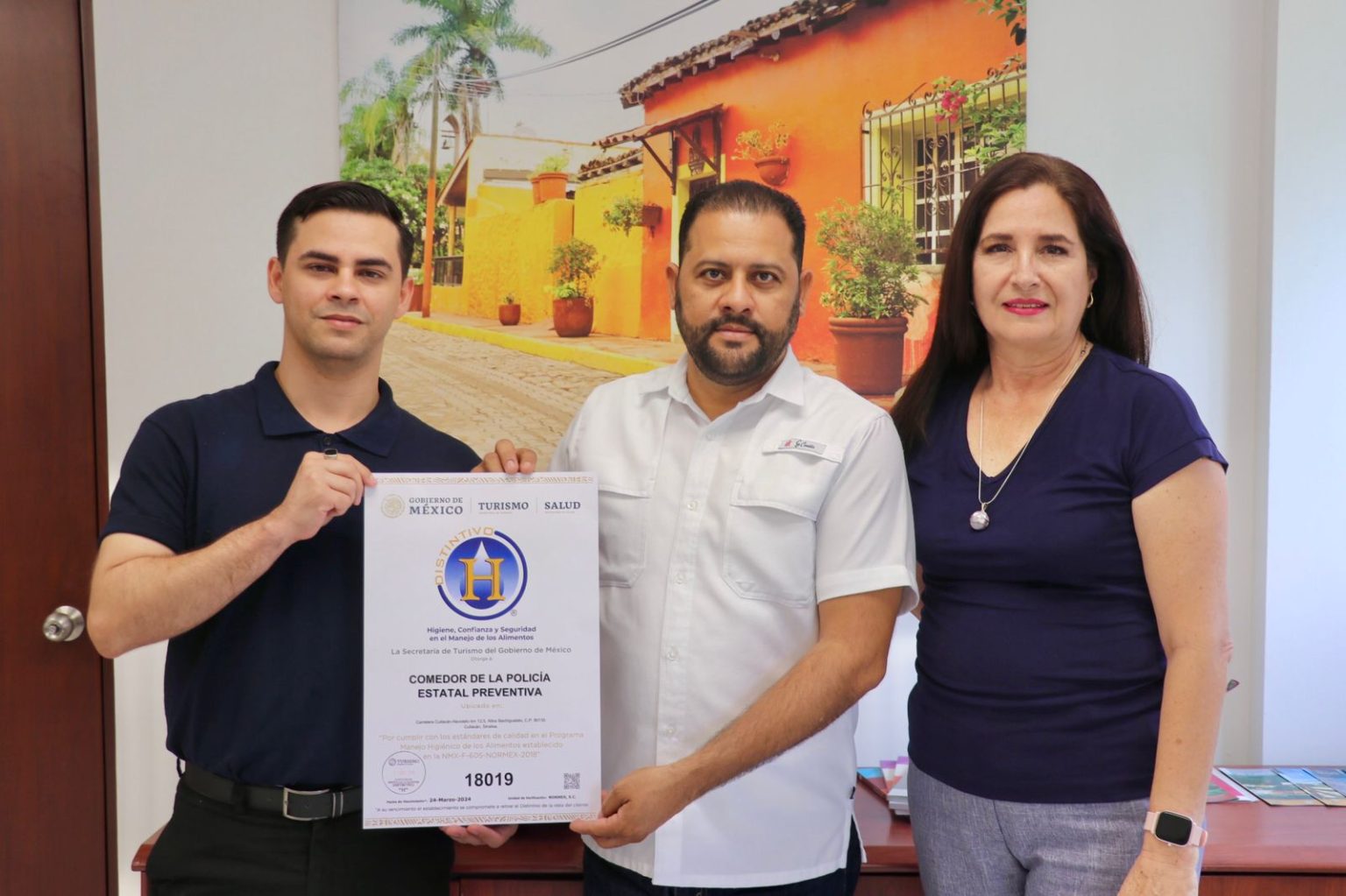 María Elena Arias Gámez, directora de Innovación y Calidad Turística, de la Sectur Sinaloa, canalizó la entrega. Éste distintivo se consigue con la asesoría de un Consultor Certificado de la Sectur, que imparte capacitación al personal que labora en los establecimientos fijos de alimentos y bebidas que así lo soliciten de acuerdo la lista de verificación de la norma en mención.