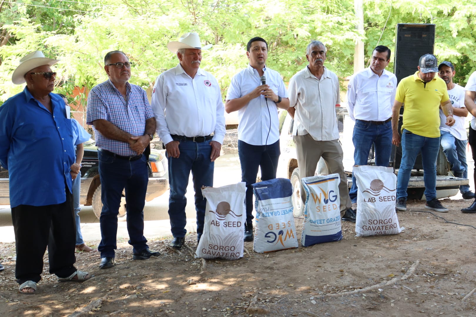 Sinaloa de Leyva, Sin a 19 de julio de 2023.- El secretario del Ayuntamiento de Sinaloa Radamés Véliz Quiñónez, asistió en representación del alcalde Rolando Mercado, a la entrega simbólica de semillas para productores temporaleros del municipio de Sinaloa.