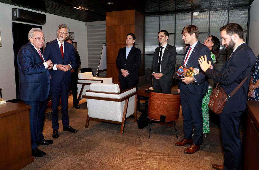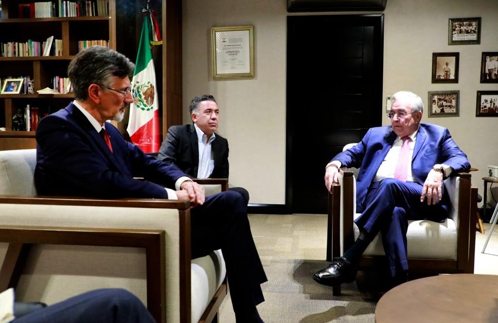 Culiacán, Sinaloa, 05 de julio del 2023.- Al recibir al Embajador de Francia en México Jean-Pierre Asvazadourian y a su comitiva diplomática, el gobernador del Estado Rubén Rocha Moya reiteró la apertura de Sinaloa a posibles nuevas inversiones francesas, a fortalecer las que ya se tienen, así como a la vinculación con universidades mediante el establecimiento de intercambios educativos y culturales; a la investigación y aplicación de tecnología bioagrícola, lo mismo que para la industria pesquera.