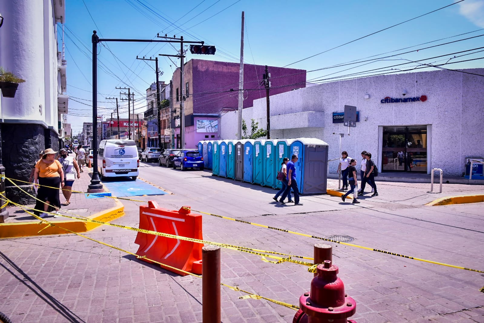 En las calles aledañas al Palacio Municipal se instalan carpas, estructuras de arcos de bienvenida y mobiliario para los stands donde se ofrecerán antojitos mexicanos a los asistentes a la verbena.