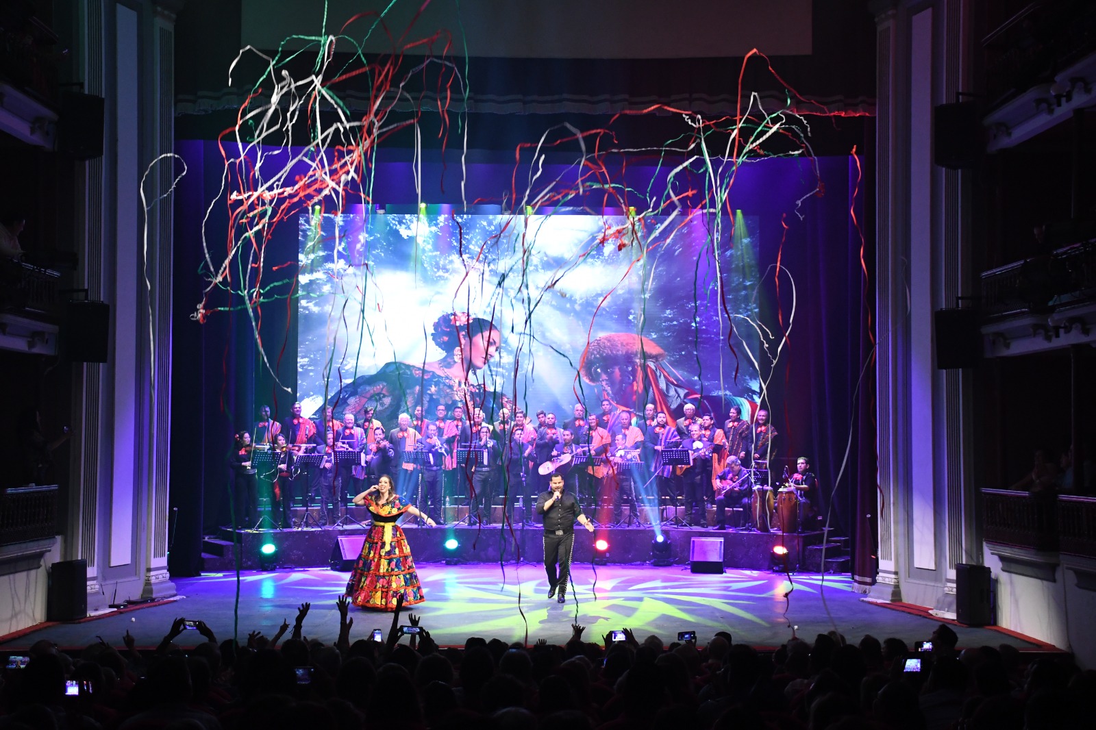 Veinte minutos después de la hora en la que terminaría “Así suena el mariachi” la gente se había puesto de pie y eufórica cantaba: “ay ay ay ay, canta y no llores” , era un gran coro que se escuchada en la sala y en los balcones, mientras a los protagonistas se unió la voz principal del Mariachi para cerrar de manera jubilosa esta fiesta mexicana.