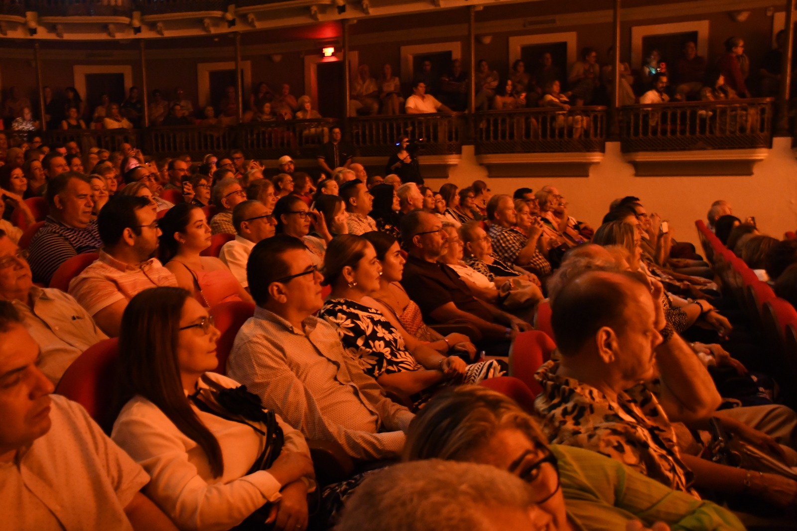Durante casi dos horas el artista de talla internacional deleitó a la audiencia acompañado por las voces masculinas del Coro Ángela Peralta, la mezzosoprano mazatleca Sarah Holcombe, el Ensamble Tradicional Mexicano y más de 700 almas que mantuvieron a su máxima capacidad el recinto cultural.