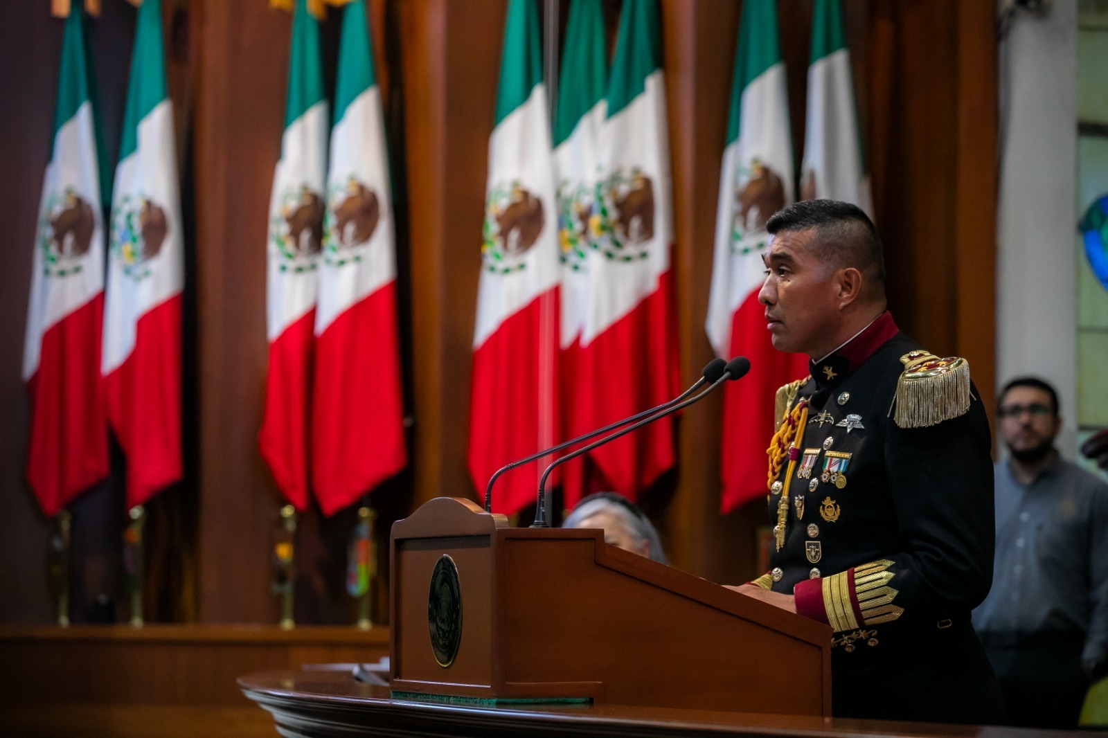 “Para quienes integramos el ejército y fuerza aérea mexicanos, constituye un gran honor encontrarnos en la Sexagésima Cuarta Legislatura del Congreso Libre y Soberano de Sinaloa y ser testigos de este momento histórico en el que el pueblo de esta entidad federativa se une a la celebración por el bicentenario de la creación del Heroico Colegio Militar”, indicó el Coronel.