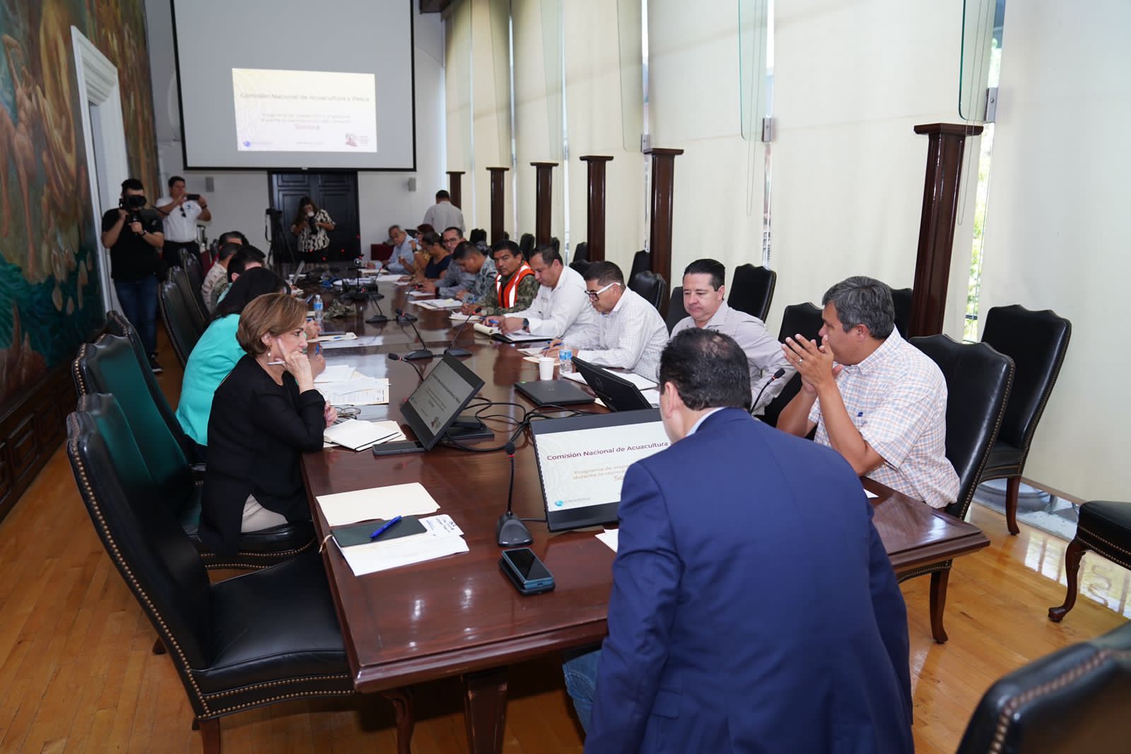Hermosillo, Sonora, México a 7 de septiembre de 2023.- Con el firme objetivo de redoblar esfuerzos en inspección y vigilancia, de cara a la próxima temporada de capturas de camarón en el litoral del Océano Pacífico, en Palacio de Gobierno del Estado de Sonora autoridades federales y estatales sostuvieron una reunión de trabajo para revisar los avances de las acciones conjuntas que se llevan a cabo en esta materia durante la veda.