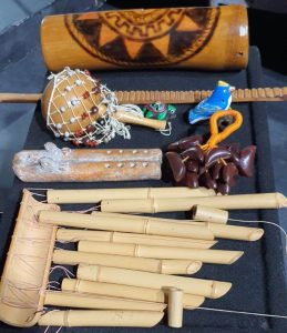 El destacado percusionista añade que esos instrumentos se han encontrado en todas las culturas prehispánicas, en la Inca, Maya, y Azteca, aunque con distintos nombres, pero con el mismo principio, y se complementa con otros instrumentos de ornamento como los silbatos, en general, imitando al canto de los pájaros.