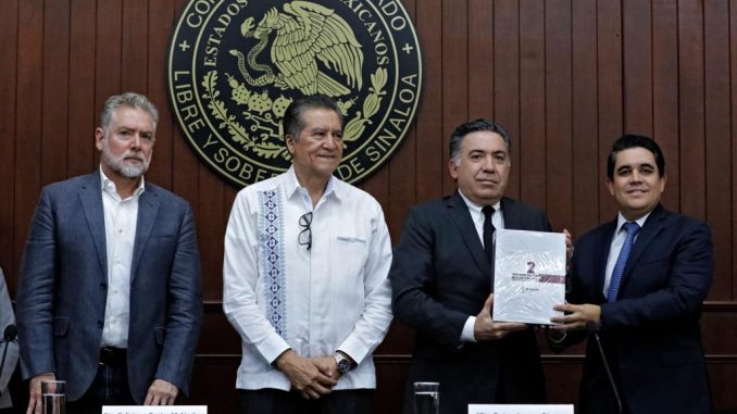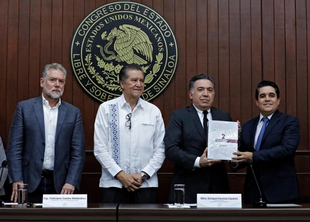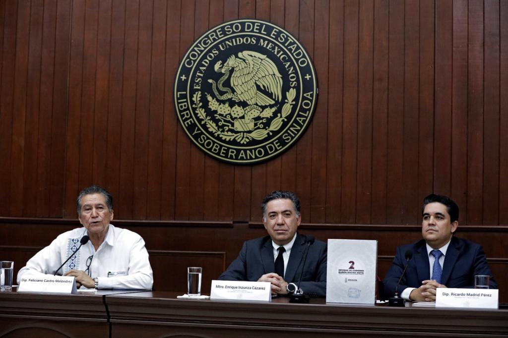 El secretario general de Gobierno, Enrique Inzunza Cázarez, fue el encargado de entregar a los diputados el documento que contiene dicho informe, para su análisis y posterior glosa