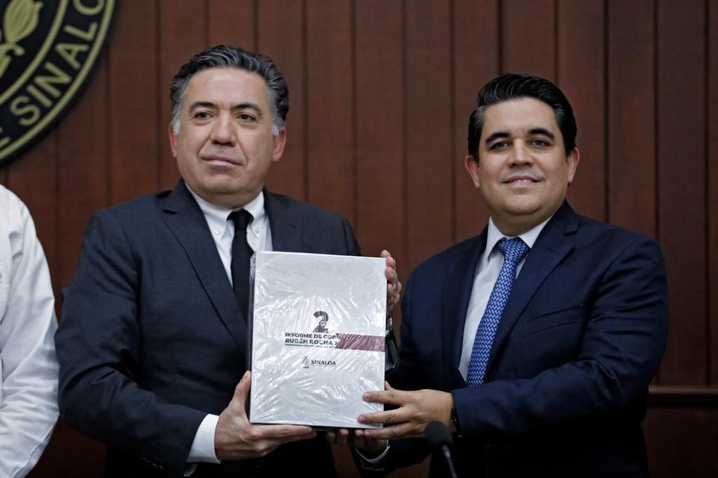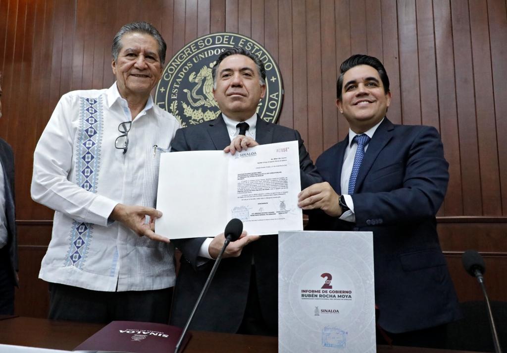 El secretario general de Gobierno, Enrique Inzunza Cázarez, fue el encargado de entregar a los diputados el documento que contiene dicho informe, para su análisis y posterior glosa