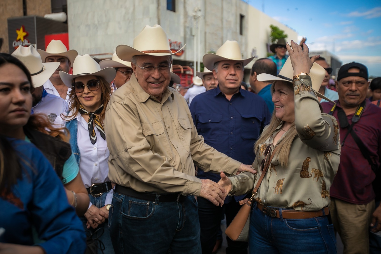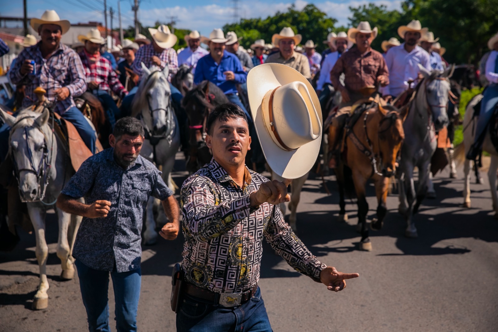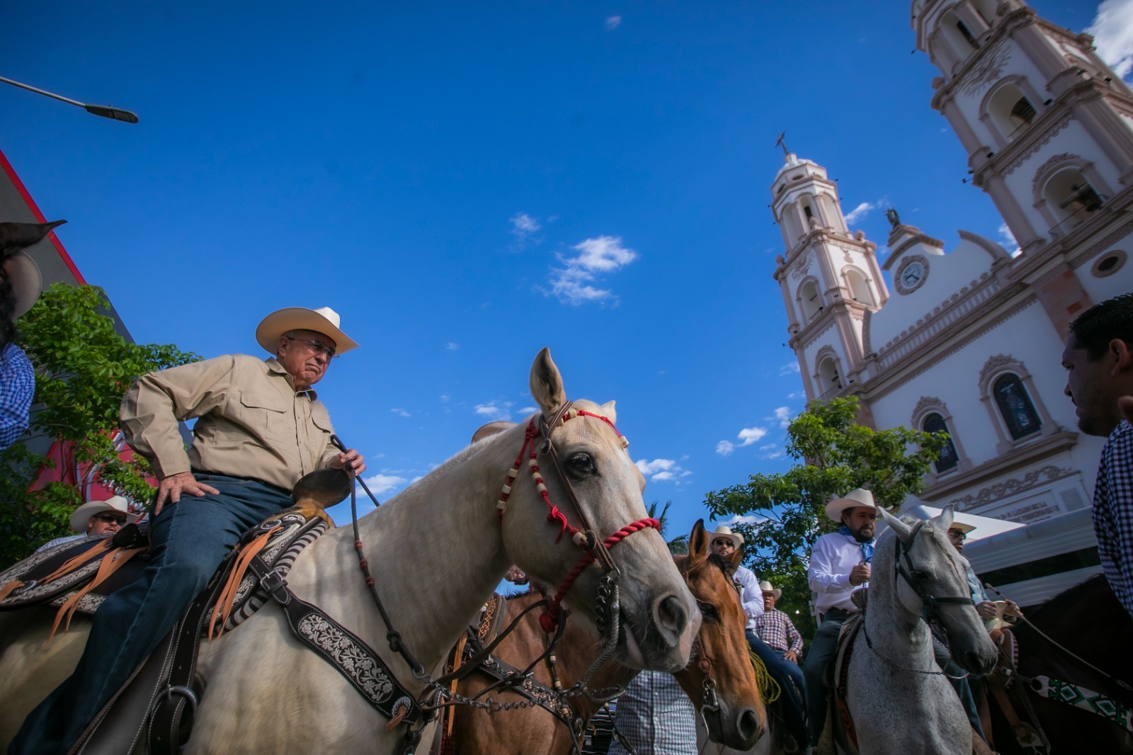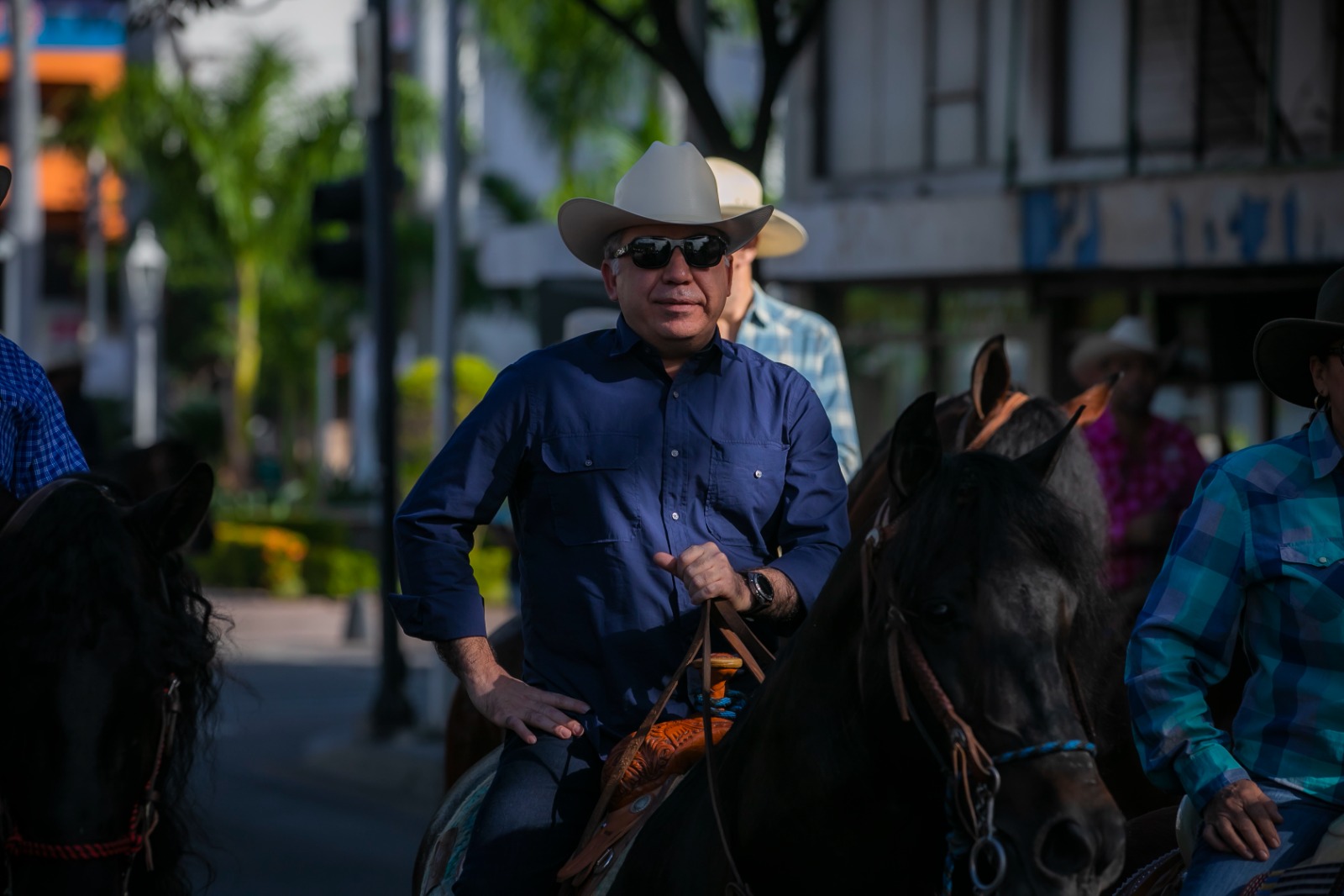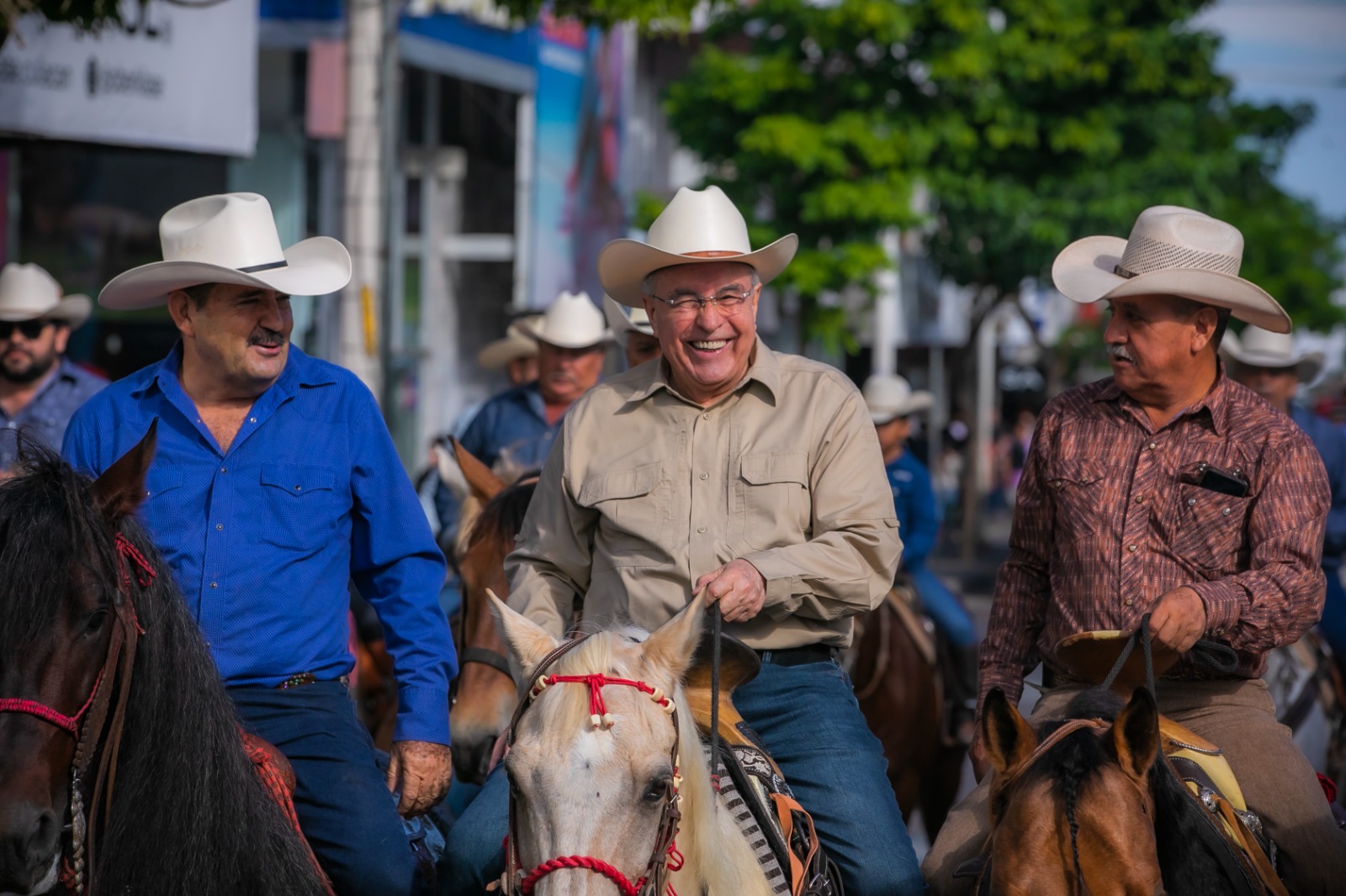 Culiacán, Sinaloa, a 12 de Noviembre de 2023.- Un vistoso recorrido con cientos de hermosos caballos por las principales avenidas de la capital del estado fue el preámbulo perfecto para el arranque de la Expo Feria Ganadera de Sinaloa 2023, que en su tradicional cabalgata de este domingo organizada por la Unión Ganadera Regional de Sinaloa, tuvo como invitado especial al Gobernador Rubén Rocha Moya, quien montado en un equino, acompañó a los líderes ganaderos, aficionados a la cultura ecuestre y público en general, durante todo el trayecto que inició en la Catedral Basílica de Nuestra Señora del Rosario en Culiacán y concluyó en las instalaciones de la organización anfitriona.