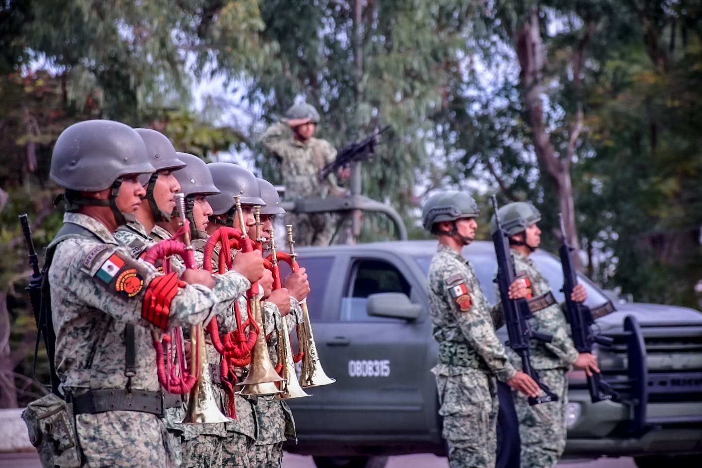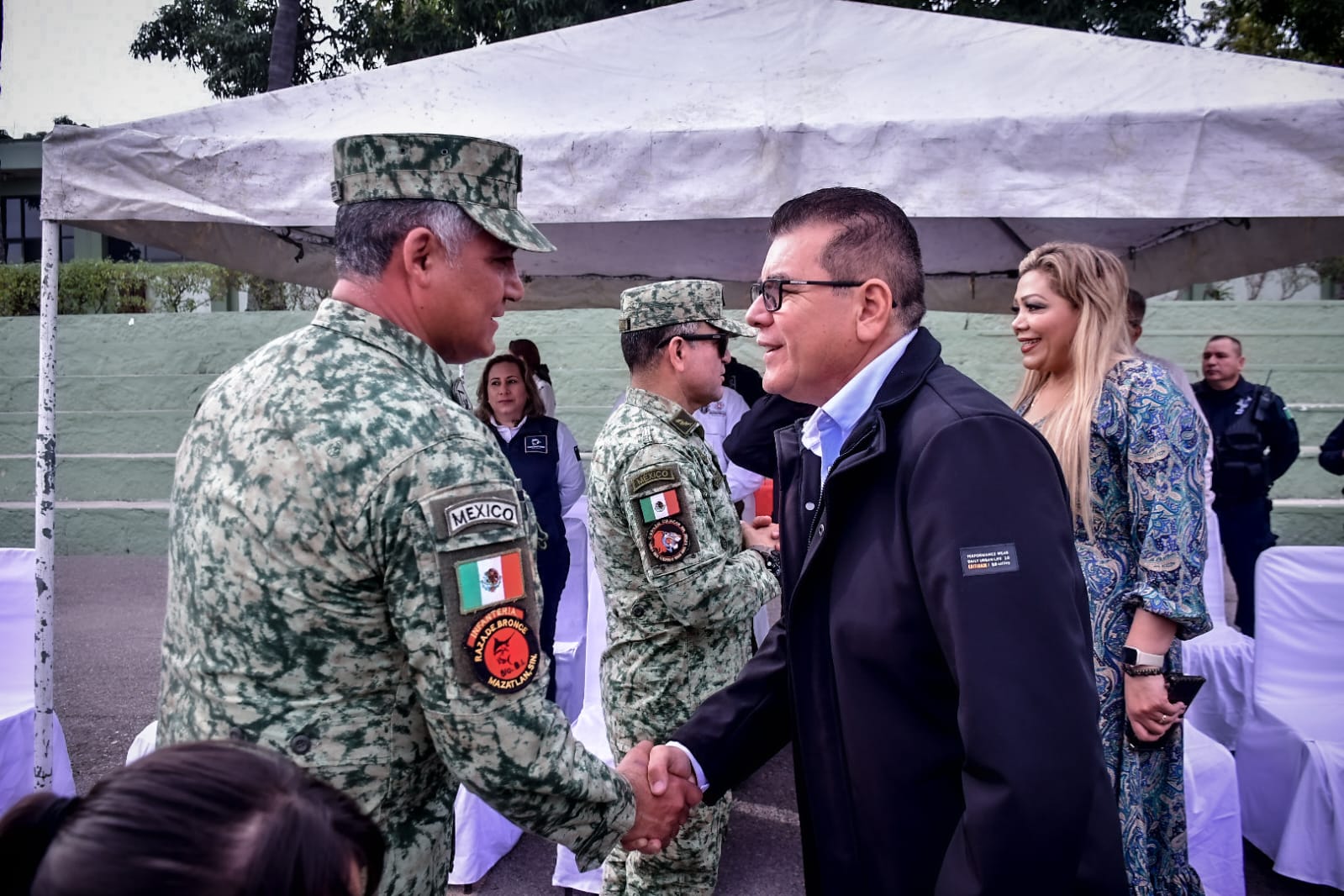 Mazatlán, Sinaloa, 18 de enero del 2024.- Edgar González, Alcalde de Mazatlán, acompañó a importantes autoridades estatales, militares y municipales a la toma de Posesión de Cargo y Protesta de Bandera del Coronel de Infantería de Estado Mayor, Jesús Rigoberto Domínguez Divene, nuevo Comandante del 8vo Batallón de Infantería.
