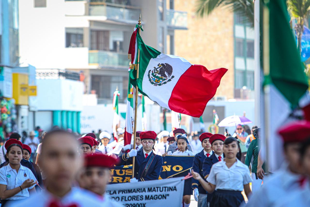 Un total de 74 escoltas, con la participación de 750 alumnos dieron vida a este desfile, en el que también estuvieron presentes bandas de guerra del Colegio Militarizado Nuevo México, Escuela Secundaria Federal 06 y COBAES 38.
