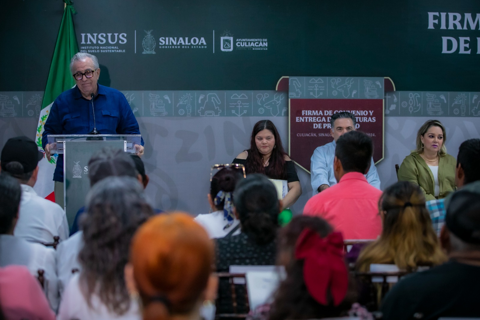 El evento contó con la presencia de Eneyda Rocha Ruiz Presidenta del Sistema DIF Estatal, Enrique Inzunza Cázarez Secretario General de Gobierno, Crisanto Cebreros Favela Responsable de la Oficina de Representación del INSUS Sinaloa, David Vargas Director del Registro Público de la Propiedad y beneficiarios del programa.Por su parte María Inés Covarrubias, beneficiaria del programa de escrituración agradeció a las autoridades el apoyo y énfasis en el tema de la regularización de sus predios “después de tocar tantas puertas, Bendito Dios, dimos con las puertas indicadas, a donde teníamos que dirigirnos y con esas personas que serían las que nos atenderían y nos escucharían en nuestra petición”