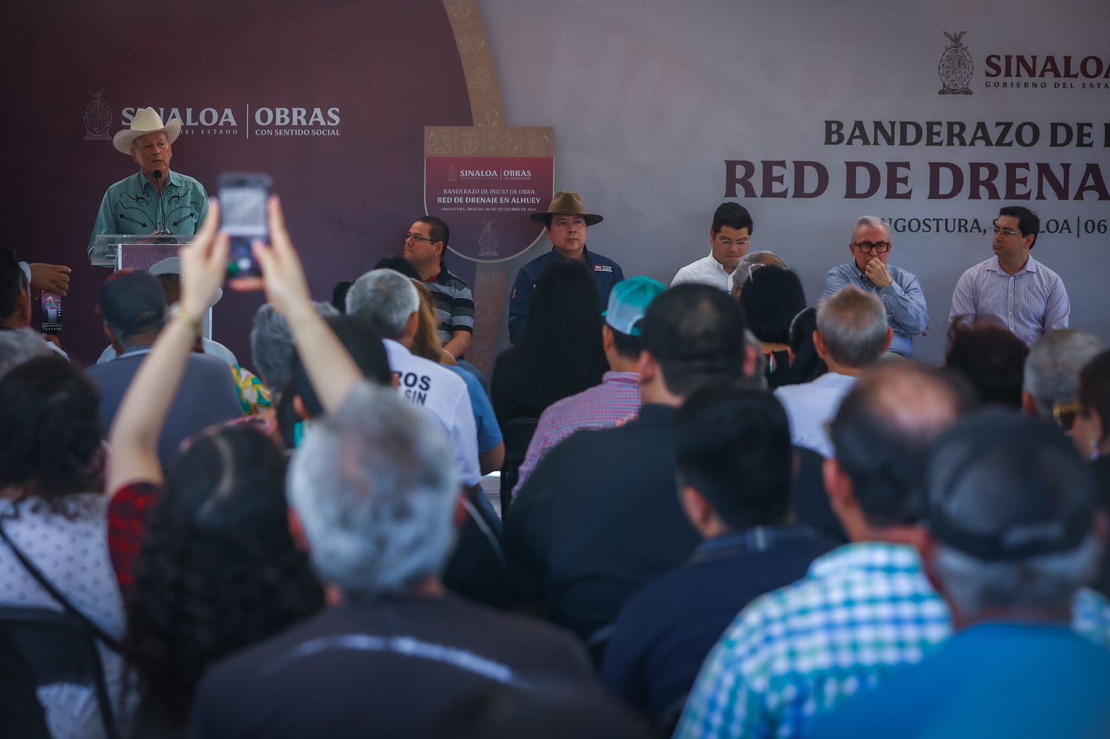 Alhuey, Angostura, Sinaloa, a 06 de septiembre de 2024.- Para solucionar el problema que actualmente padecen los habitantes de Alhuey, Angostura, que cada vez que se registran abundantes lluvias colapsa el sistema de drenaje sanitario, el gobernador Rubén Rocha Moya puso en marcha los trabajos de sustitución de la antigua red de drenaje por tubería nueva, trabajos que serán concluidos en los siguientes cuatro meses, y en los cuales se invertirán 2.6 millones de pesos.