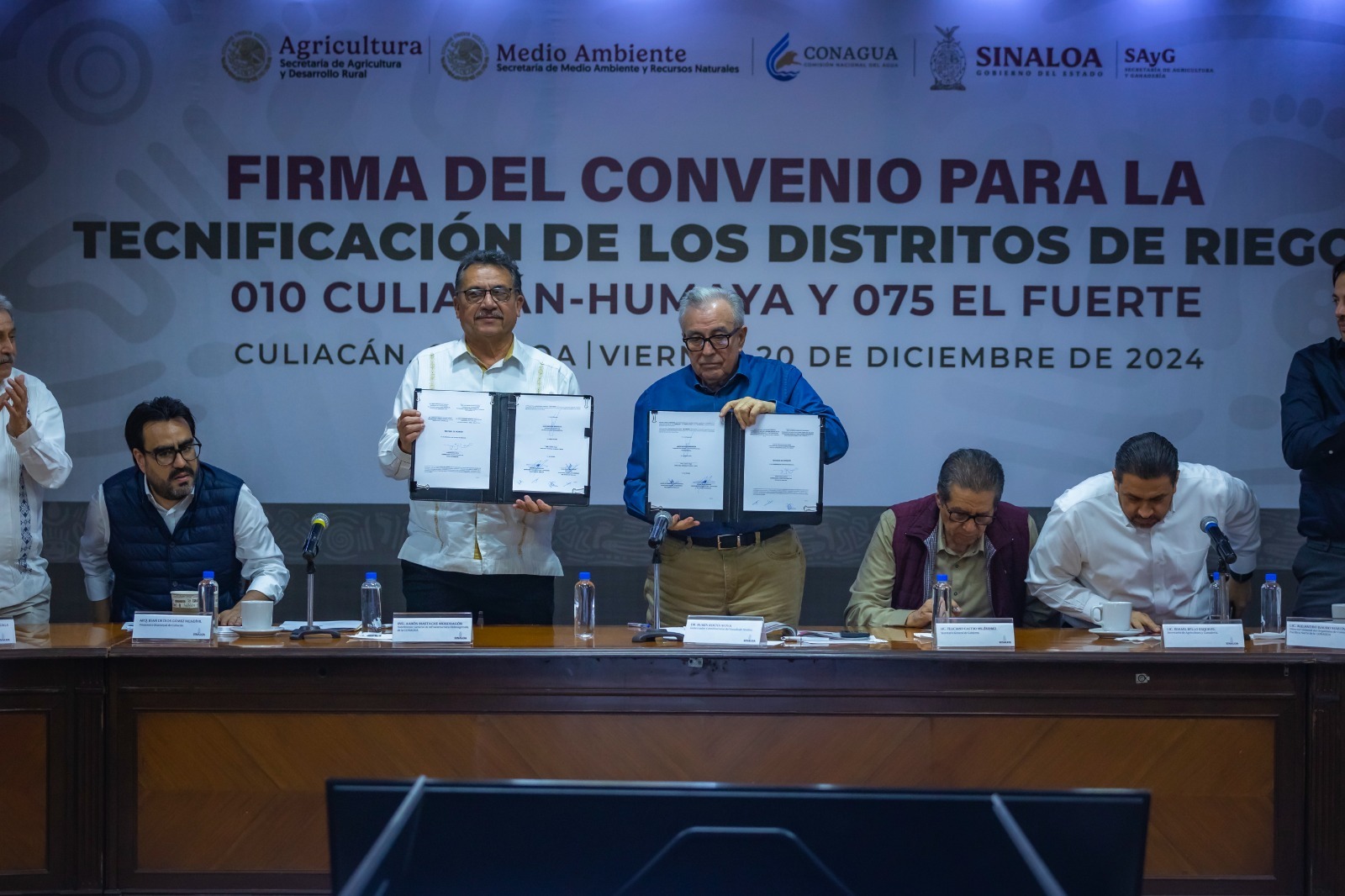 Firma el Gobernador Rubén Rocha Moya convenio con Conagua para la tecnificación de los distritos de riego 075 y 010