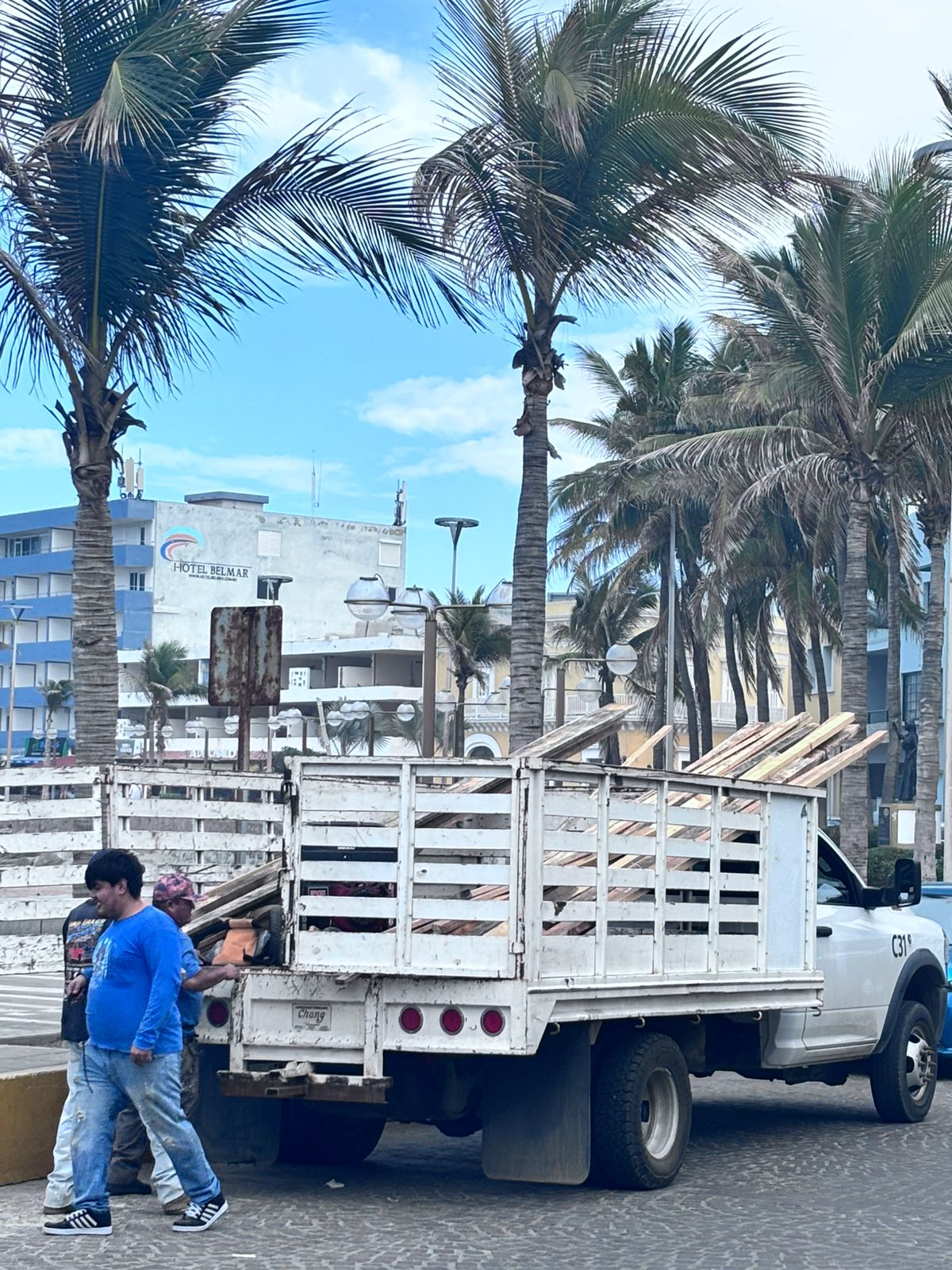 El corte y la colocación de madera junto a la banqueta de Olas Altas se estará llevando a cabo durante los próximos días hasta concluir con la ampliación de banquetas, la colocación del sistema eléctrico y la instalación de baños y templetes para dar servicio a quienes celebran las fiestas de Carnaval junto al mar.