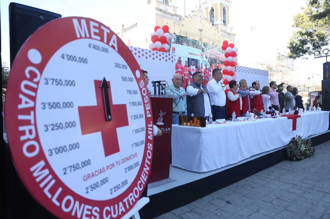 La Presidenta Municipal, Estrella Palacios Domínguez, y el Delegado de Cruz Roja en Sinaloa, Carlos Bloch Artola, encabezaron el emotivo evento en la explanada de la Plazuela República, donde funcionarios del Ayuntamiento y empresarios pusieron el ejemplo y fueron los primeros en realizar sus aportaciones a la Benemérita Institución.