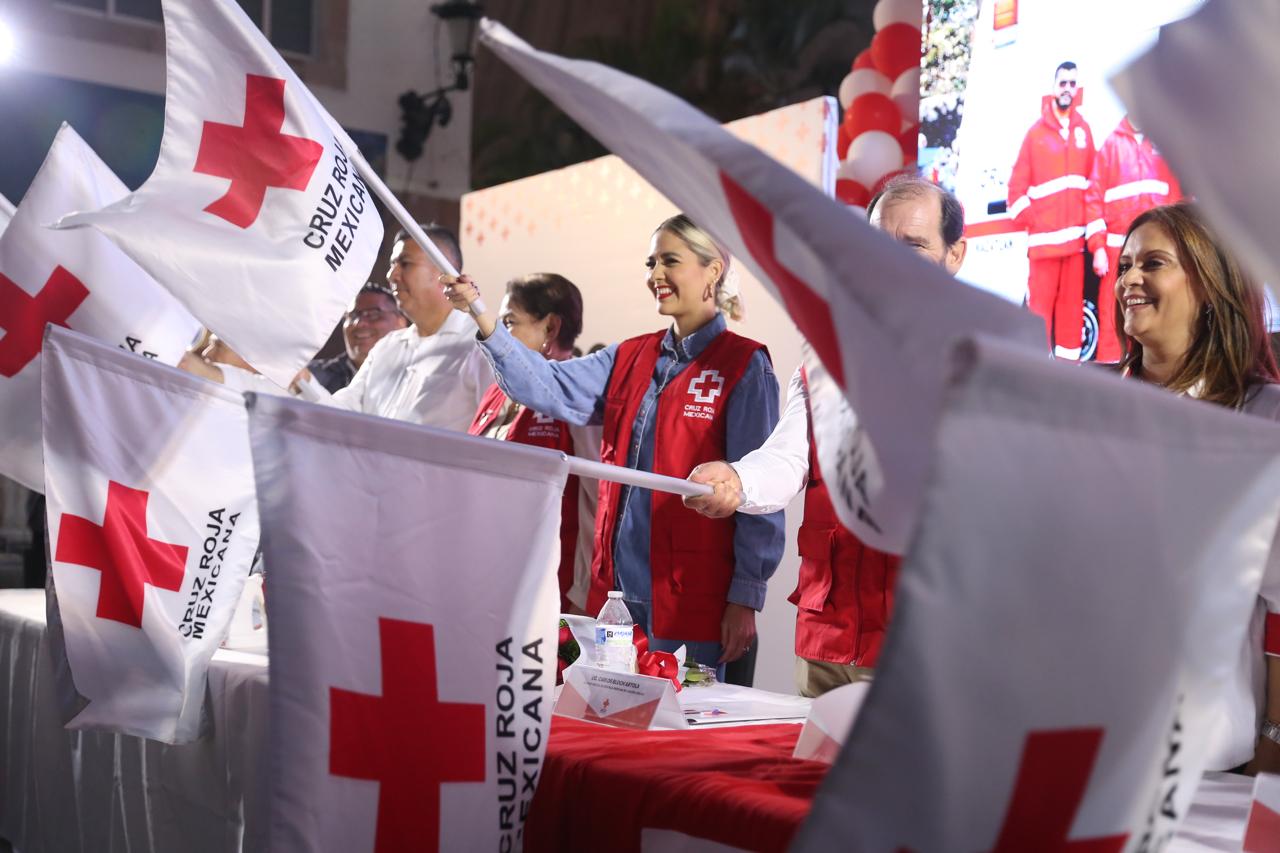 La Presidenta Municipal, Estrella Palacios Domínguez, y el Delegado de Cruz Roja en Sinaloa, Carlos Bloch Artola, dan inicio a la campaña altruista con la meta de recaudar 4 millones 400 mil pesos