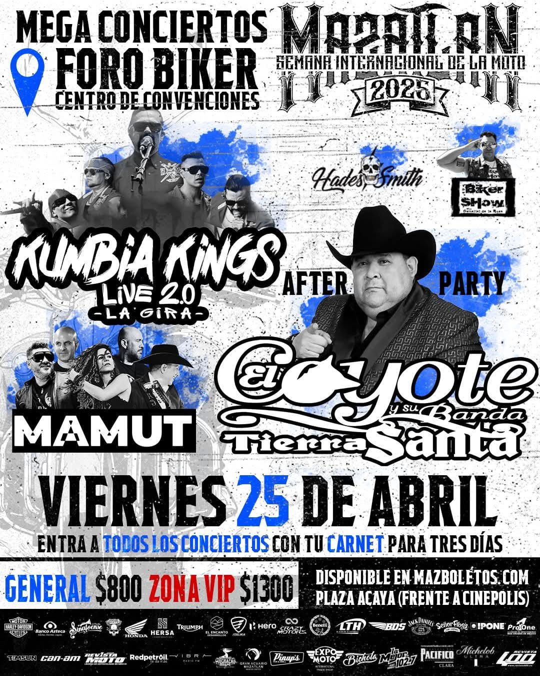 Viernes 25 de abril: Kumbia Kings, Mamut, El Coyote y su Banda Tierra Santa