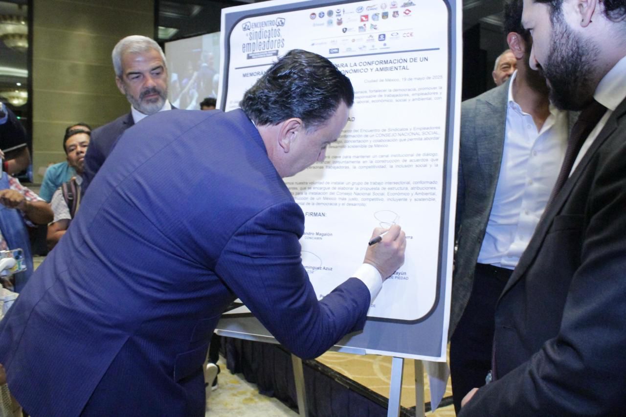 Por primera vez en México, sindicatos y empleadores suscriben en unidad un acuerdo para conformar un Consejo Nacional, Social, Económico y Ambiental.