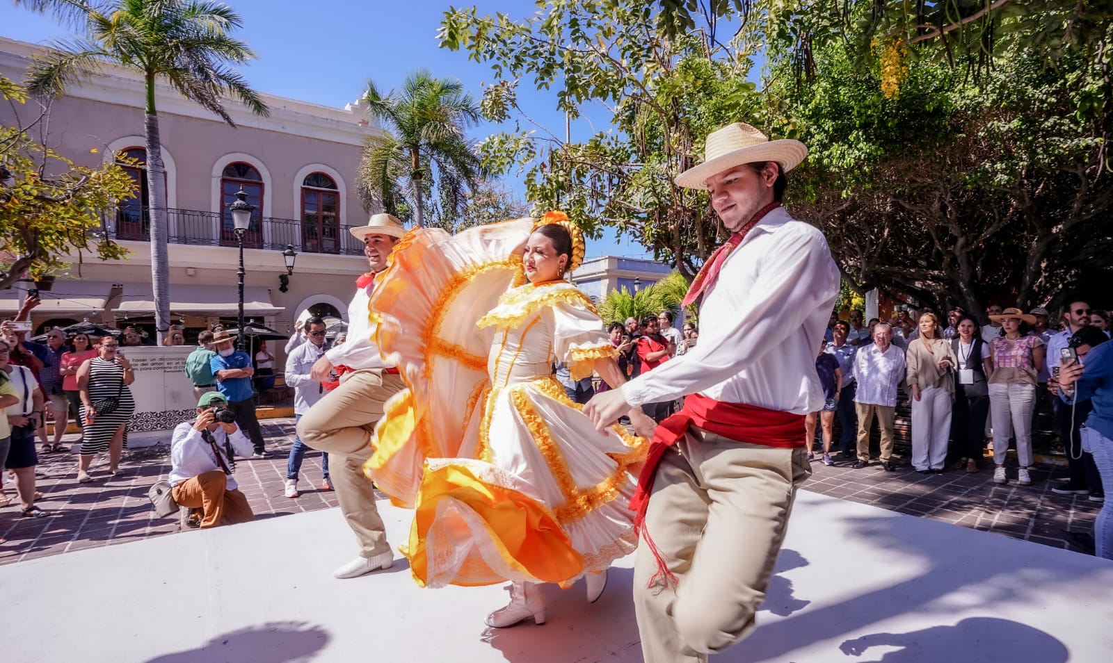 El corazón del Centro Histórico de Mazatlán vibró ayer con una muestra excepcional de la riqueza cultural sinaloense, durante una colorida callejoneada ofrecida a la Secretaria de Turismo Federal, Josefina Rodríguez Zamora. La jornada cultural fue el marco perfecto para la entrega del reconocimiento “Orgullo Sinaloense, Embajador Turístico” al Doctor Marcos Osuna y la presentación oficial del Festival de Pueblos Mágicos del Golfo de California 2025.
