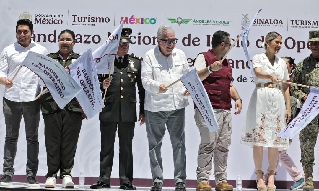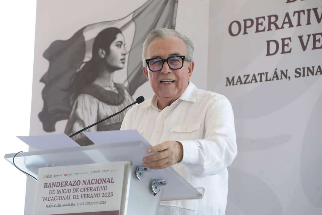 Mazatlán, Zona Trópico, Sinaloa, México, a; 11 de julio de 2025.- Desde el emblemático puerto de Mazatlán, el gobernador Rubén Rocha Moya, acompañado de Hernán Cortés, comandante de la Guardia Nacional, dio el Banderazo Nacional de Inicio de Operativo Vacacional de Verano 2025, que permitirá que los ciudadanos visiten los destinos turísticos nacionales e internacionales con tranquilidad.
