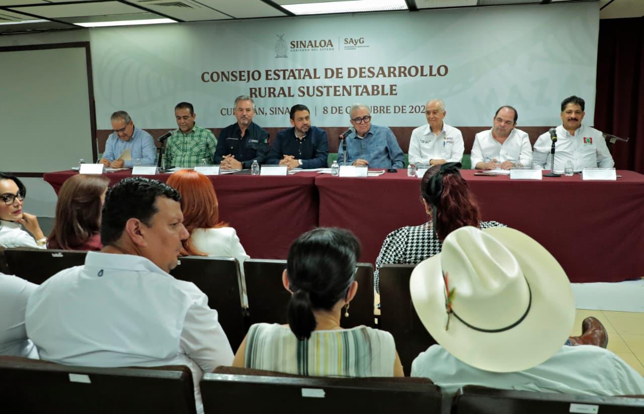 Acompañaron al gobernador Rocha en esta reunión de Consejo, Jesús Vega Acuña, representación en Sinaloa de la SADER; Jesús Alberto Rojo Plascencia, presidente de la Confederación de Asociaciones Agrícolas del Estado de Sinaloa, Julián Lugo Esparza, presidente del Consejo Directivo de CESAVESIN, la diputada Irma Moreno Ovalles, así como integrantes del Consejo Estatal de Desarrollo Rural Sustentable del Estado de Sinaloa.