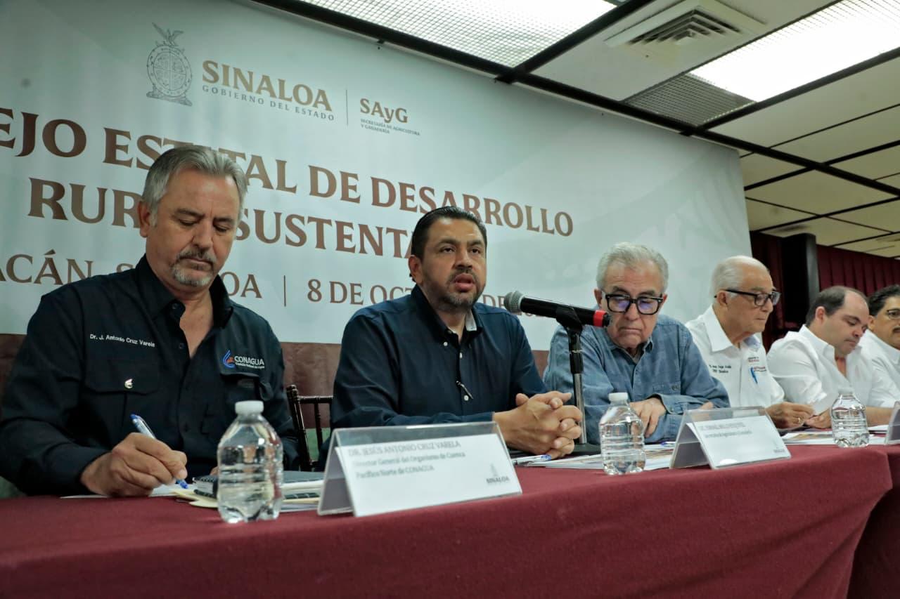 Durante la reunión, el director general del Organismo Cuenca Pacífico Norte Jesús Antonio Cruz, señaló que actualmente con un almacenamiento del 53% de volumen de agua en las presas del estado los 9 distritos de riego tienen la capacidad de siembra de 659 mil 138 hectáreas, siendo los distritos 075 Río Fuerte y 010 Culiacán- Humaya los que concentran la mayor cantidad de hectáreas disponibles para cultivar. El director del Organismo, enfatizó que la cantidad de hectáreas podría aumentar de acuerdo a las condiciones climáticas, ya que de presentarse algún fenómeno meteorológico el volumen de agua en las presas podría aumentar.