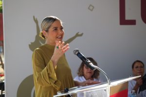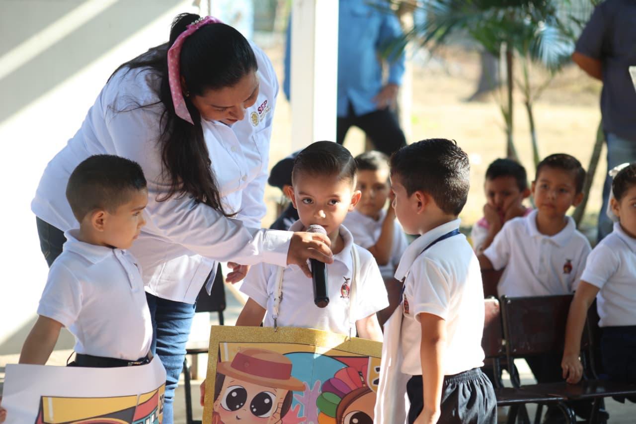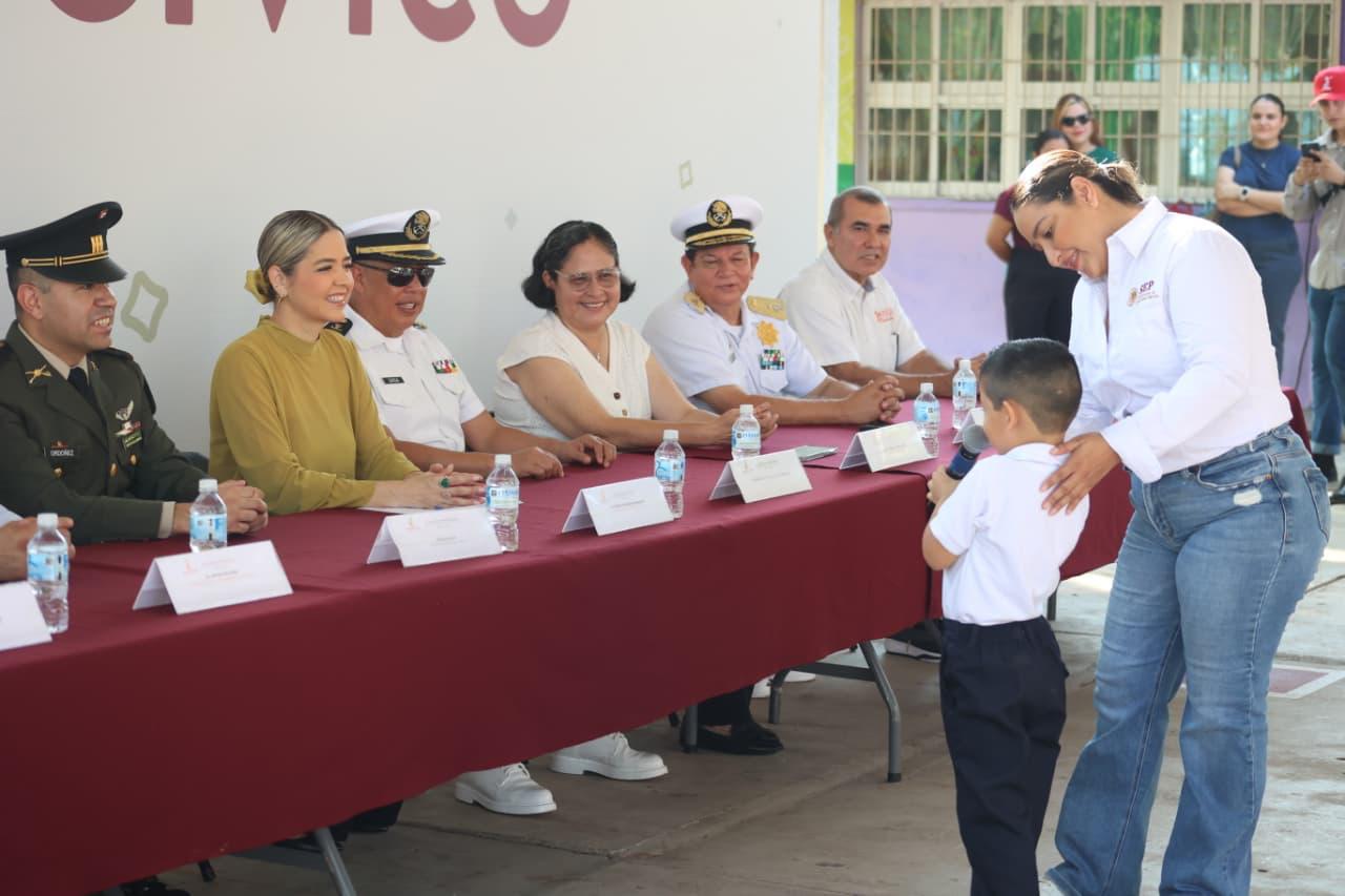 “Cada mejora en una escuela es una inversión en la felicidad y el bienestar de sus hijos, siguiendo el ejemplo de nuestra Presidenta, la Doctora Claudia Sheinbaum, y de nuestro Gobernador, el Doctor Rubén Rocha Moya, grandes maestros de México. A ustedes, niñas y niños, sigan aprendiendo, sigan soñando y recuerden siempre cuidar su escuela, su comunidad y su bandera, porque el amor a México se demuestra todos los días, en las pequeñas cosas que nos hacen grandes: en respetar, en ayudar, en estudiar y en trabajar juntos por un mejor futuro”, manifestó.