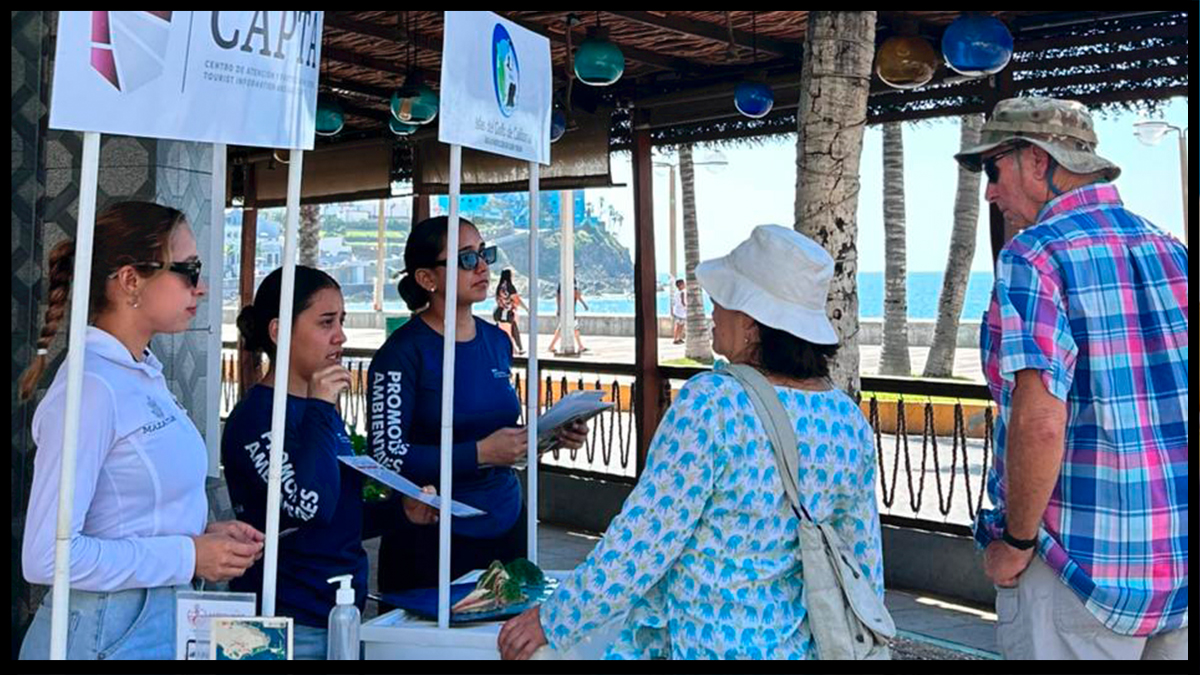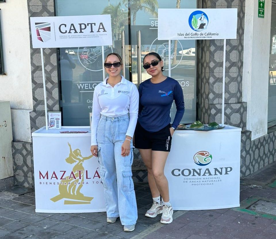 Mazatlán, Sinaloa, 5 de noviembre de 2025.– Como parte de las acciones permanentes que impulsa el Gobierno Municipal, que encabeza la Presidenta Estrella Palacios Domínguez, para fortalecer la vocación turística del puerto, este miércoles se desarrolló una jornada de promoción y orientación dirigida a visitantes, con la colaboración entre la Comisión Nacional de Áreas Naturales Protegidas (CONANP) y el Centro de Atención y Protección al Turista (CAPTA).