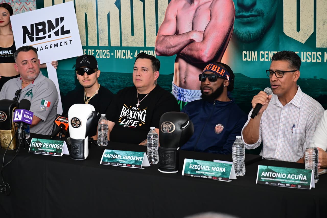 Además del ocho veces campeón nacional, asistieron a la cita con los medios, el promotor Eddy Reynoso, el entrenador Radamés Hernández Cázares; el director de Industria de Reuniones de la Secretaria de Turismo de Sinaloa, José Alfonso Reséndiz Memije, así como el director del Instituto Municipal del Deporte Mazatlán, Ezequiel Antonio Mora Bracamontes, además del presidente de la Comisión de Box y Lucha de Mazatlán, Antonio Acuña.