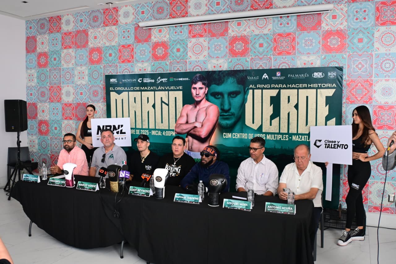 Mazatlán, Sinaloa a 11 de diciembre de 2025.- A dos días del estreno de Marco Alonso Verde Álvarez, medallista olímpico de Paris 2024, como boxeador profesional en Mazatlán, se realizó la última conferencia de prensa de la velada “Marco: el Orgullo de Mazatlán Vuelve”, misma que se llevará a cabo con el respaldo del Gobierno de Mazatlán, encabezado por la Presidenta Municipal, Estrella Palacios Domínguez.